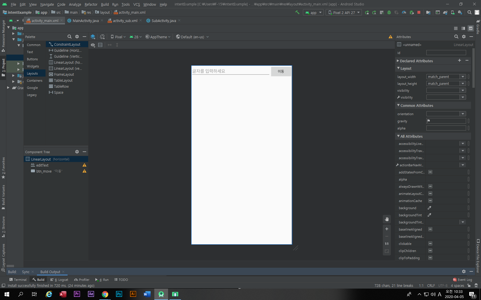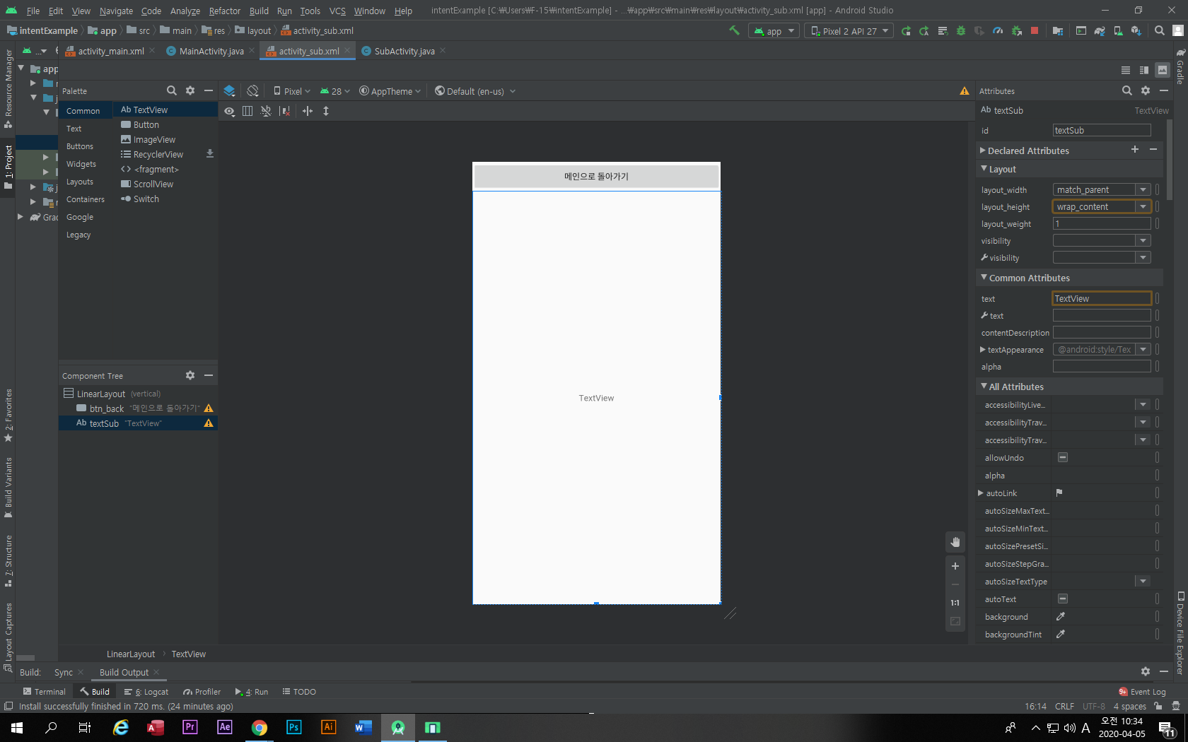 | [안드로이드 스튜디오]intent 사용하기 (0) | 2020.04.05 |