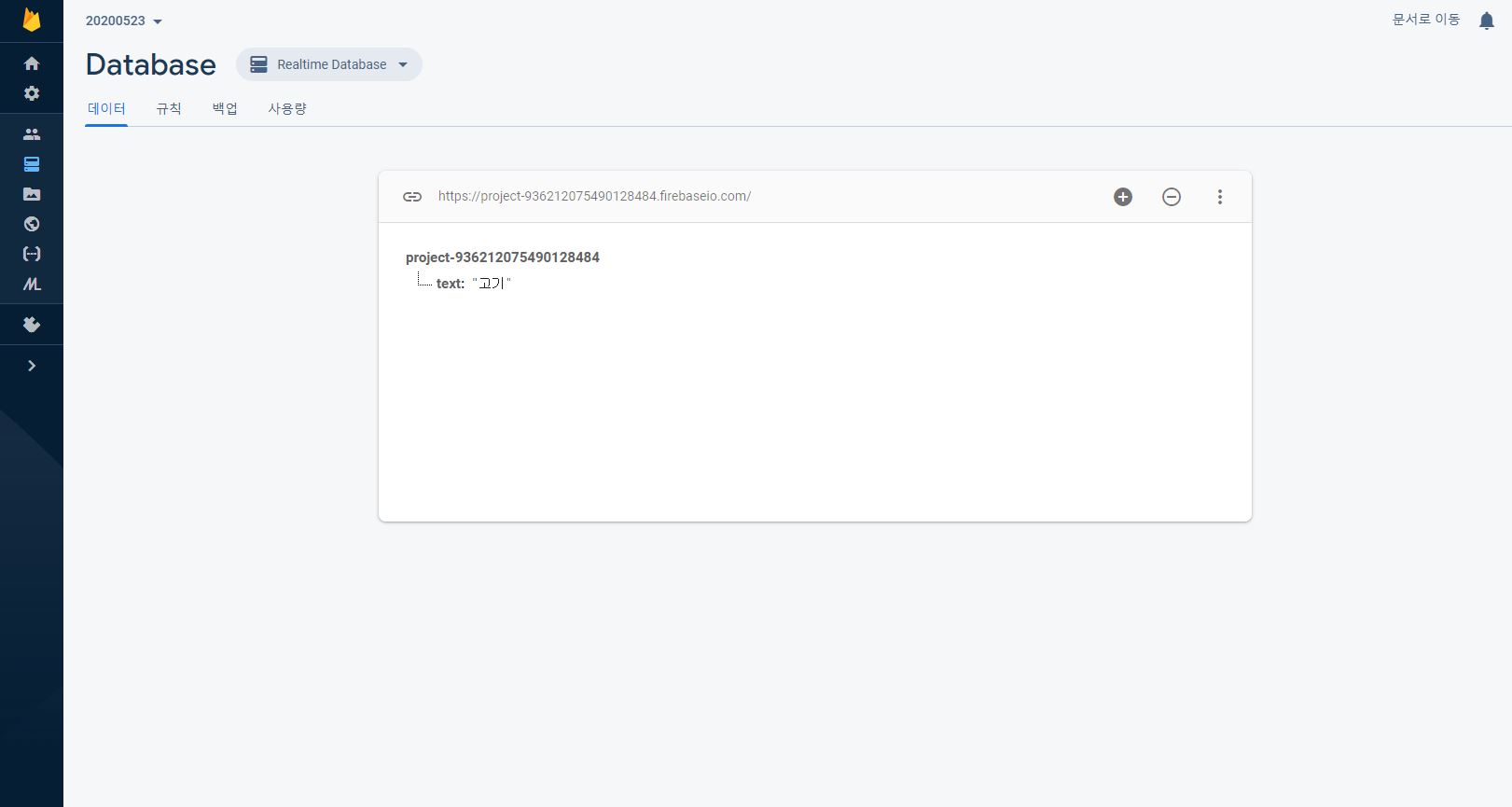 3. 실시간 데이터베이스를 들어가면 이런 화면이 뜨는데 여기서 데이터 옆에 규칙을 눌러준다.